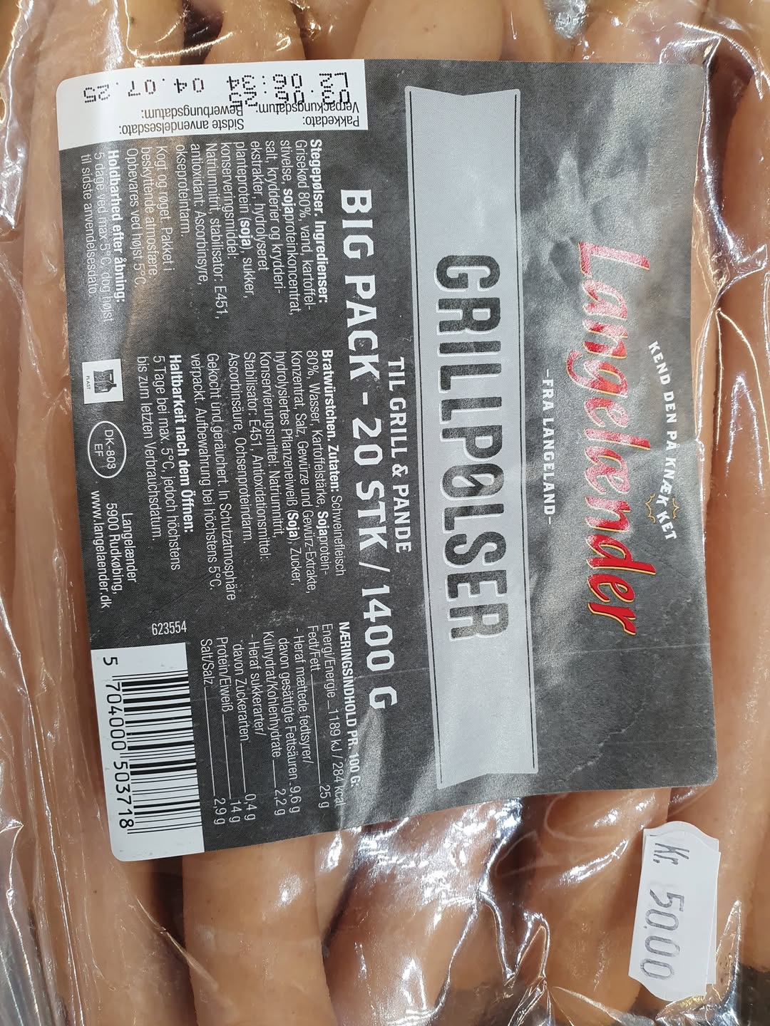 1400 gram grillpølser til kun 50 kr!!!